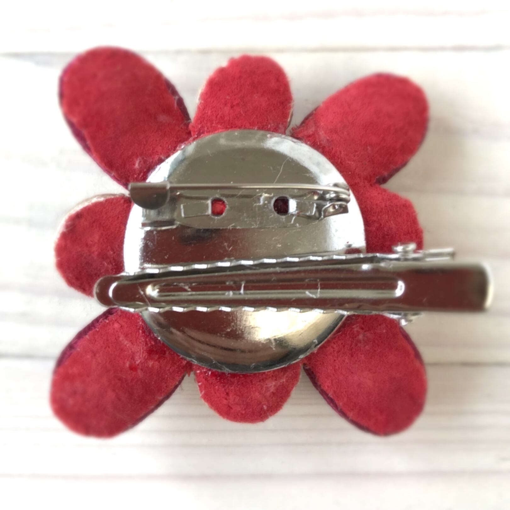 チェコガラスパール、スウェード生地(裏面)